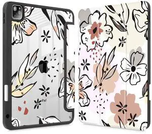 Mektron Case for iPad Pro 11 inch (4th, 3rd, 2nd & 1st Gen) 2022 2021 2020 2018, Buit in Pencil Holder with Shockproof Cover Clear Shell + Trifold Stand + Auto Wake/Sleep, Floral C383