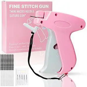 Stitch Gun for Clothes Handheld Stitch Gun Quick Clothing FixerSewing Kit Includes 1,000 Black Fasteners & 1,000 White Fasteners & 6 Needles (Pink)