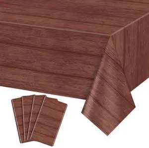 4Pcs Wood Tablecloth, Brown Rustic Table Covers, Rectangular Table Decoration for Western Barn Themed Barbecue Rustic Party Decorations, 51 x 86.6 Inch