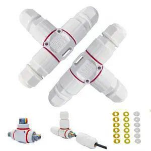 T-Type Waterproof Cable Connectors,3 Way IP68 Waterproof Electrical Junction Box Splice Kit or Cables Ø 4-11mm, for Extension Cord,Outdoor LED Lights and Electrical Wire Connecting (2PCS White)