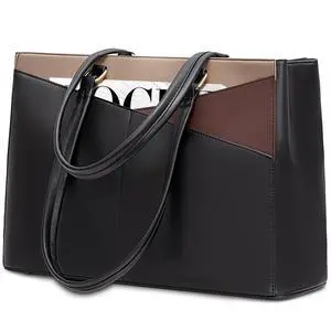 Laptop Bag for Women, 15.6 inch Laptop Tote Work Teacher Bags Cancas Computer Shoulder Bag,Black/Coffee/Light Brown