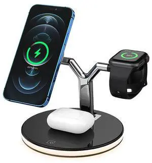 3 in 1 Foldable Magnetic Wireless Charger Stand 15w Fast Charger Holder with Night Light