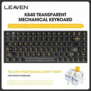 K840 RGB Gaming Keyboard 84-Key Transparent Mechanical Layout USB-C Interface Hot Swappable Programmable OEM Customizable Black-yellow