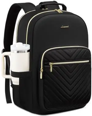 LOVEVOOK Laptop Backpack for Women with Giant Tumbler Holder 18.4 inch,Designer Travel Backpack Laptop Bag College Backpack,Quilted Work Nurse Teacher Backpack Purse Computer Bag Casual Daypack, Black