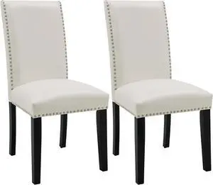 ASARUDA Dinning Chairs Set of 2 with Nail-Heads Trim, Faux Leather Kitchen Upholstered Seat, Wood Legs, 39'' x 25'' x 19'', Holds 300 Lbs, Easy Assembly