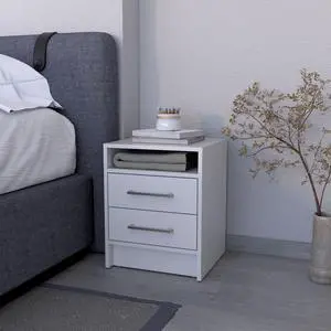 Nightstand 20"H, Two Drawers, One Shelf, Superior Top, Light Gray