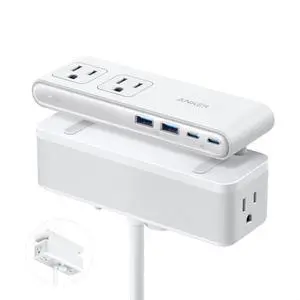 Anker Nano Power Strip, Desk Clamp with 1500J Surge Protector, 5ft Extension Cord, 70W Max Gaming Desk Accessories, 6 AC, 2 USB A, 2 USB C, Home Office Essentials, Fit 0.6~1.8'' Tabletop Edge (White)