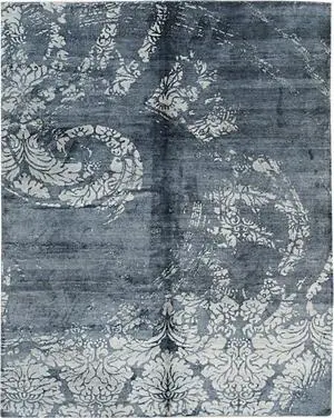Hand Knotted Wool Gray SILVER Transitional Abstract Traditional Knot Rug, Made in India