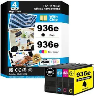 936E 936 Ink Cartridges Combo Pack Compatible with HP 936 936XL for HP 936 Ink Cartridges Combo Pack Use with Officejet Pro 9125e 9120e 9730e 9135e 9130e Printers 4 Pack