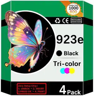 923XL 923e High Yields Ink Cartridges Combo Pack with Chip - Replacement for HP Ink 923 - Use for OfficeJet Pro 8120 8123 8130 8133 8135e 8138e 8139e 8122e Printer - 4 Pack Black Cyan Magenta Yellow