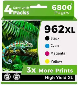 902XL Ink Cartridges Combo Pack for HP 902 XL Black Color Compatible for Printer 6978 6968 HP902 HP902XL OfficeJet 6958 6962 6970 6960 6975 6950 6954 6951 6956 6961 6963 6964 6966 Cyan Magenta Yellow