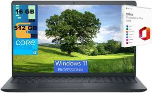 Dell Inspiron 15 Laptop, 15.6" FHD (1920 x 1080) Display, Intel Core i3-1215U 6 Cores Processor, Intel UHD Graphics, 16GB DDR4 512GB PCIe SSD, Wi-Fi and Bluetooth, Windows 11 Pro,Office 2024 License