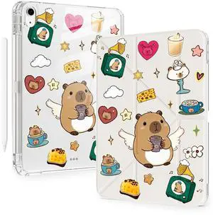 BlHMCASE Cute Kawaii Capybara for iPad (A16) 11th/10th Generation Case 11 Inch/10.9 Inch 2025/2022 with Pencil Holder, Auto Sleep/Wake, White Leather Acrylic Back Detachable Cover