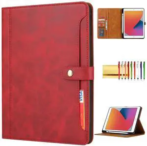 Folio Case for iPad 6th 5th Gen 9.7-inch/iPad Air 2/iPad Pro 9.7, TECHCIRCLE Vegan Leather Folding Stand [Pencil Holder] Soft TPU Back Shell Protective Smart Cover with Card Slots & Pockets, Red