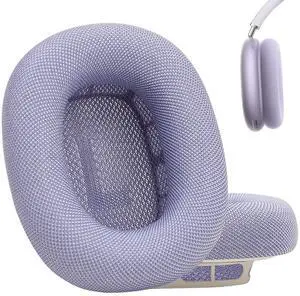 Laselan Upgraded Silicone Ear Cushions for AirPods Max Headphones 2024, Mesh Fabric Covered Ear Pads with Silicone & Memory Foam and Magnet (Purple)