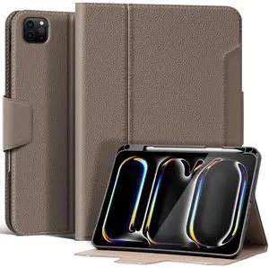 CPNVWA Genuine Leather Case for iPad Pro 13 Inch M5 2025 / M4 2024 Premium Folio Cover with Pencil Holder Auto Wake/Sleep & Adjustable Stand - Vintage Dark Brown