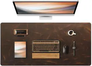 Real Leather Desk Mat Set (32x16) Large Desk Cover Desk Blotter Protector Computer Gaming Mouse Pad Table Laptop Office Desktop Accessories