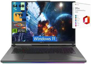 ASUS ROG Strix G18 Gaming Laptop, 18" WQXGA 240Hz, AMD Ryzen 9 8940HX 16 Core Processor, NVIDIA GeForce RTX 5060 8 GB GDDR7, 64GB DDR5 1TB PCIe SSD, 4-Zone RGB, Windows 11 Pro ,Office 2024 License