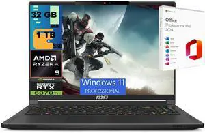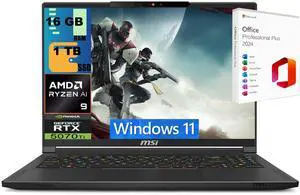 MSI Stealth A16 Gaming Laptop, 16" 240Hz QHD+, AMD Ryzen AI 9 HX 370 12-Cores Processor, NVIDIA Geforce RTX 5070 Ti 12 GB, 32GB DDR5  1TB PCIe SSD, Wi-Fi 7, Windows 11 Pro ,Office 2024 License