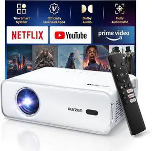 Aurzen Eazze D1 Smart Projector with Mount Drop Ceiling, Netflix-Officially-Licensed, Auto Focus & Keystone, DoIby Audio, Zoom, Native 1080P Movie