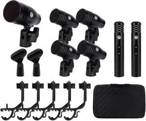 W IN-MIX 7 Piece Wired Dynamic Drum Mic Kit (Whole Metal)- Kick Bass, Tom/Snare & Cymbals Microphone Use for Drums, Vocal, Other Instrument Complete with Thread Clip, Mics Holder