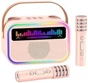 Mini Karaoke Machine for Kids Adults, 2025 TOP Christmas Birthday Gifts for Girls 3,4,5,6,7,8+Year Old Toddler Toys,Portable Bluetooth Speaker with 2 Wireless Karaoke Microphones Player(Rose)