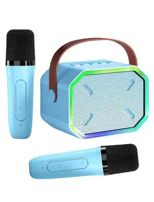 Karaoke Machine for Kids and Adults, Mini Portable Bluetooth Speaker with 2 Wireless Microphones, Led Lights for TV, Kids Gifts for Girls Boys Family Party Birthday (Blue)