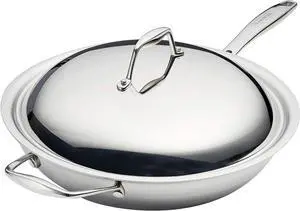 Tramontina Tri-Ply Clad Stainless Steel 12.5-Inch Wok with lid, Induction-Ready, Dishwasher-Safe, NSF-Certified, Made in Brazil