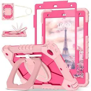 SUPLIK Kids Case for iPad 5th/6th Generation (9.7 inch, 2017/2018), iPad Air 1 & Air 2 & Pro 9.7 Case with Screen Protector, Durable Shockproof Protective Cover with Handle Stand, Pink