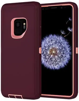 for Samsung Galaxy S9 Case with Screen Protector, Full Body Heavy Duty Shockproof Drop-Proof Phone Case Rugged Triple-Layer Defender Protective Cover for Samsung Galaxy S9 (Wine/Pink)