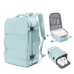 coowoz Large Travel Backpack For Women Men,Carry On Backpack Flight Approved,Hiking Backpack Outdoor Rucksack Casual Daypack Fit 15.6 Inch Laptop Shoes Compartment (Sky Blue L)