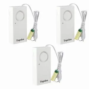 Specifications: Topvico, TP-206W-3, TP-206W, 9.7 L x 4.5 W x 2.2 H centimeters, 0.11 pounds, 9 volts, Battery Powered, Alkaline, 1, 120 decibels, Water Detection Sensor, Wall Mount