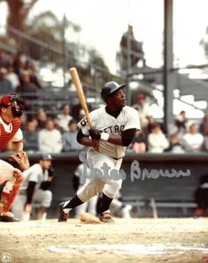 Gates Brown signed Detroit Tigers 8x10 Photo #26 (bat on shoulder/blue signature)