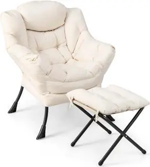 SlickBlue Modern Accent Sofa Chair with Folding Footrest and Side Pocket