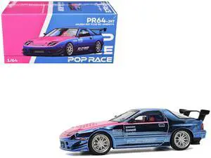 Mazda RX7 (FC3S) RE Amemiya RHD Blue Metallic with Pink Hood "Los Angeles Edition" 1/64 Diecast Model Car by Pop Race