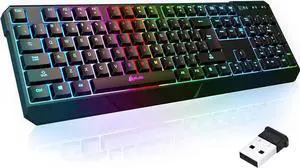 KLIM Chroma Wireless Spanish (España) Keyboard, RGB Backlit Wireless Keyboard, Rechargeable Battery, Quiet, Water-Resistant, Plug & Play for PC, Mac, PS4/PS5