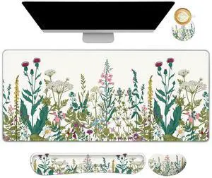 Green Gardener Desk Mat Anime Forest XL Gaming Mouse Pad Plant Lover Desk Pad with Stitched Edges, Women Desktop Decor Mousepad Laptop Computer Keyboard and Mouse Mat Desk Accessories 31.5x11.8 in