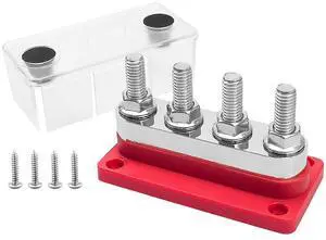 GMURA Bus Bar Terminal Block 12-48V 600A Max, 4 M10 Studs (3/8") High Current Copper Busbar Terminal Block with Waterproof Cover, Marine Heavy Duty Bus Bar Power Distribution Block, Red