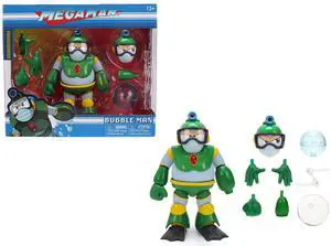 Bubble Man 5" Figure (Deluxe Version) with Accessories and Alternate Head and Hands "Mega Man" (1987) Video Game Model by Jada