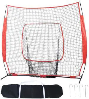 VEVOR 7x7 ft Baseball Softball Practice Net, Portable Baseball Training Net for Hitting Batting Catching Pitching, Backstop Baseball Equipment Training Aids with Strike Zone