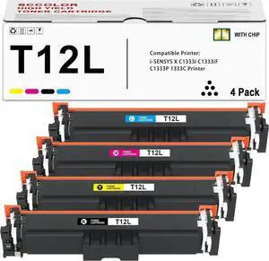 T12 Toner Cartridge Set (4-Pack,BK/C/Y/M) Replacement for Canon T12 T12L 5098C005AA 5097C005AA 5096C005AA 5095C005AA for i-SENSYS X C1333i C1333iF C1333P 1333C mf1333c Printer
