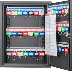 Fort Knox Key Holder Cabinet - 60-Key Cabinet - 60 Easy-to-Write-On Key Tags - Piano Hinged Door - Standard Keyed Lock - Steel Construction - Key Lock Box