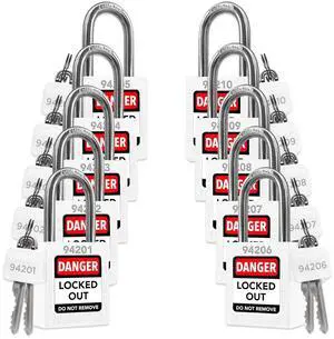 Lockout Tagout Locks Set - 10 White Loto Locks, Keyed Different Lock Out Tag Out Padlocks, 2 Keys Per Lock, OSHA Coliant Lockout Locks
