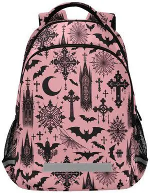 MNSRUU Laptop Backpack with Chest Strap, Black Gothic Moon Spider Webs and Bats School Backpack, Travel Hiking Bag for Boys Girls Teen College Adult, Rucksack Knapsack