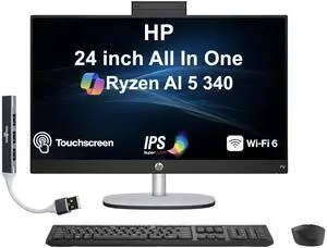 HP 24 Copilot + All-in-One 23.8" Touchscreen IPS FHD Display (AMD Ryzen AI 5 340, 16GB DDR5, 8TB PCIe SSD, AMD Radeon 840M, WiFi 6, Webcam, Bluetooth 5.4, Win 11 Home) w/DKZ USB Port Expander