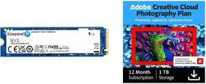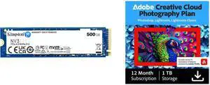 Crucial T500 1TB Gen4 NVMe M.2 Internal Gaming SSD with Heatsink, Up to 7300MB/s, PlayStation 5 Compatible + 1mo Adobe CC All Apps- CT1000T500SSD5
