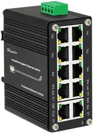 Hardened Industrial Gigabit 10 Ports Ethernet PoE+ Switch 10/100/1000BASE-T, 8-Port 802.3at PoE Up to 240-watt PoE Budget & 2-Port Uplink, DIN-Rail Compact Network Switch with Auto-MDI/MDI-X Function