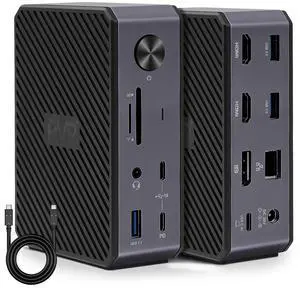 Glomtheia Laptop Docking Station,10-in-1 USB C Hub, 4K Dual HDMI Monitors Adapter, Powered Hub with 100W PD, VGA, 2xUSB-A 3.0, USB-C Data Port, SD/TF Reader, 3.5mm Audio, USB Hub for MacBook Pro, XPS