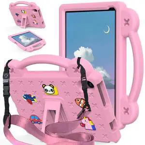 Kwamaz Kids Case for Urao 10.1 inch Tablet C107, EVA Kids Shockproof Cover with Strap Handle Stand for Urao 10.1'' 2024 Case (Pink)