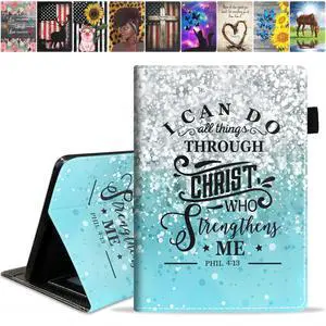 TBXOSTN Case for Kindle Fire HD 10 Tablet 10.1" (9th/7th Generation, 2019/2017 Release), Premium PU Leather Stand Cover with Smart Auto Wake, Blue Background Quote Bible Verse Phil 4:13